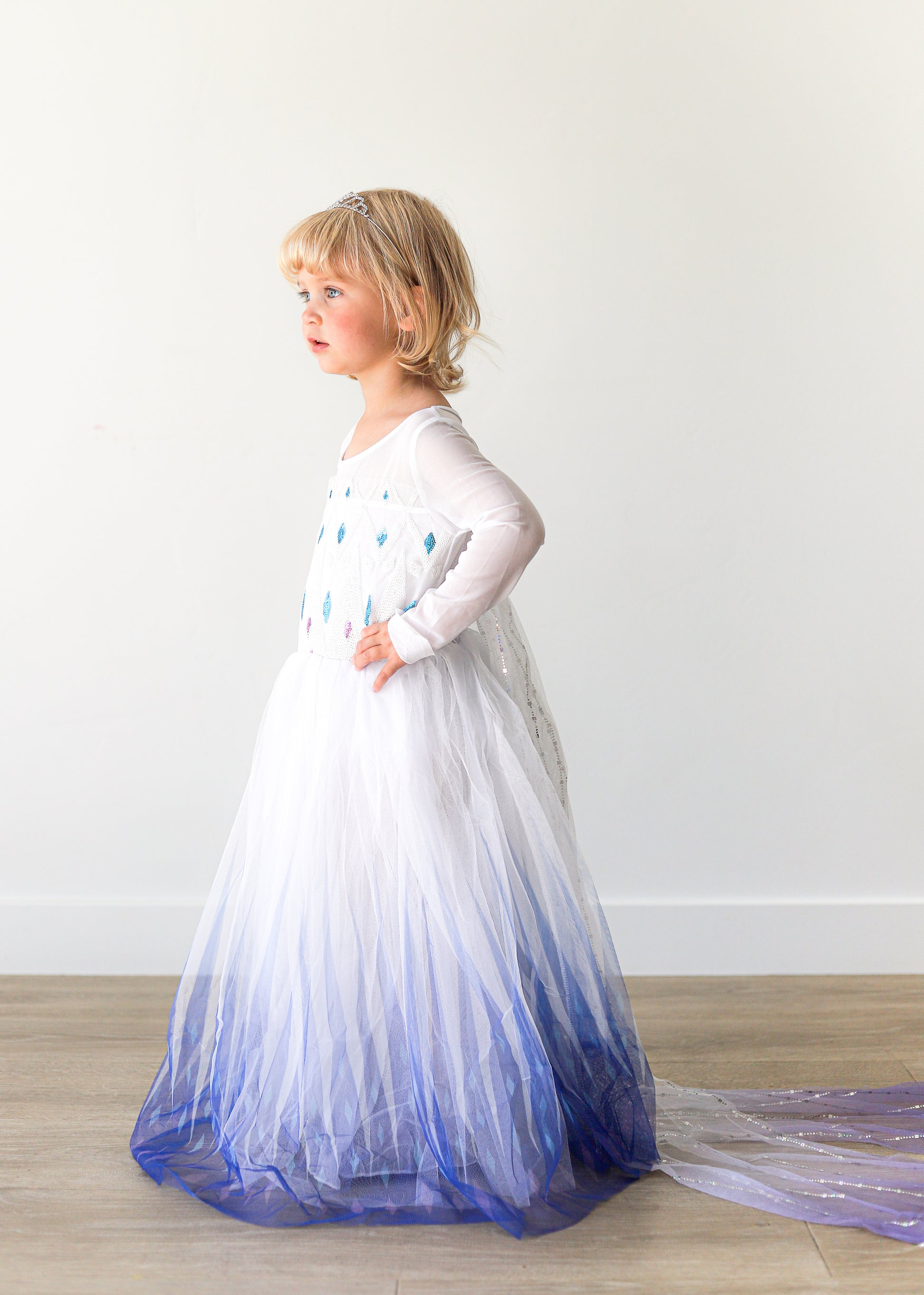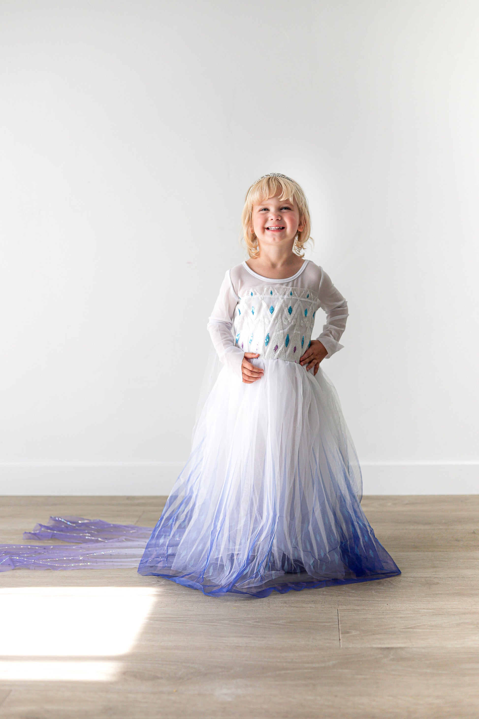 Elsa dress, white frozen princess dress, long-sleeve snow queen gown, girls icy princess costume, toddler frozen outfit, white tulle dress, winter queen costume, crystal shimmer dress, magical dress-up clothes, holiday princess gown, snow sparkle dress