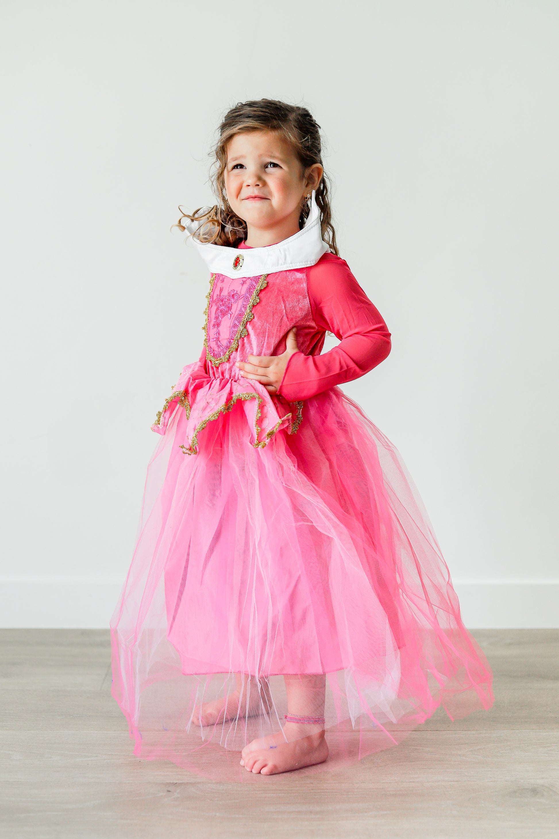 Aurora princess dress, pink princess costume, toddler fairytale outfit, princess play dress, classic storybook dress, sleeping beauty dress for girls, pretend play costume, short pink princess dress, magical kids dress, pink dress with white collar