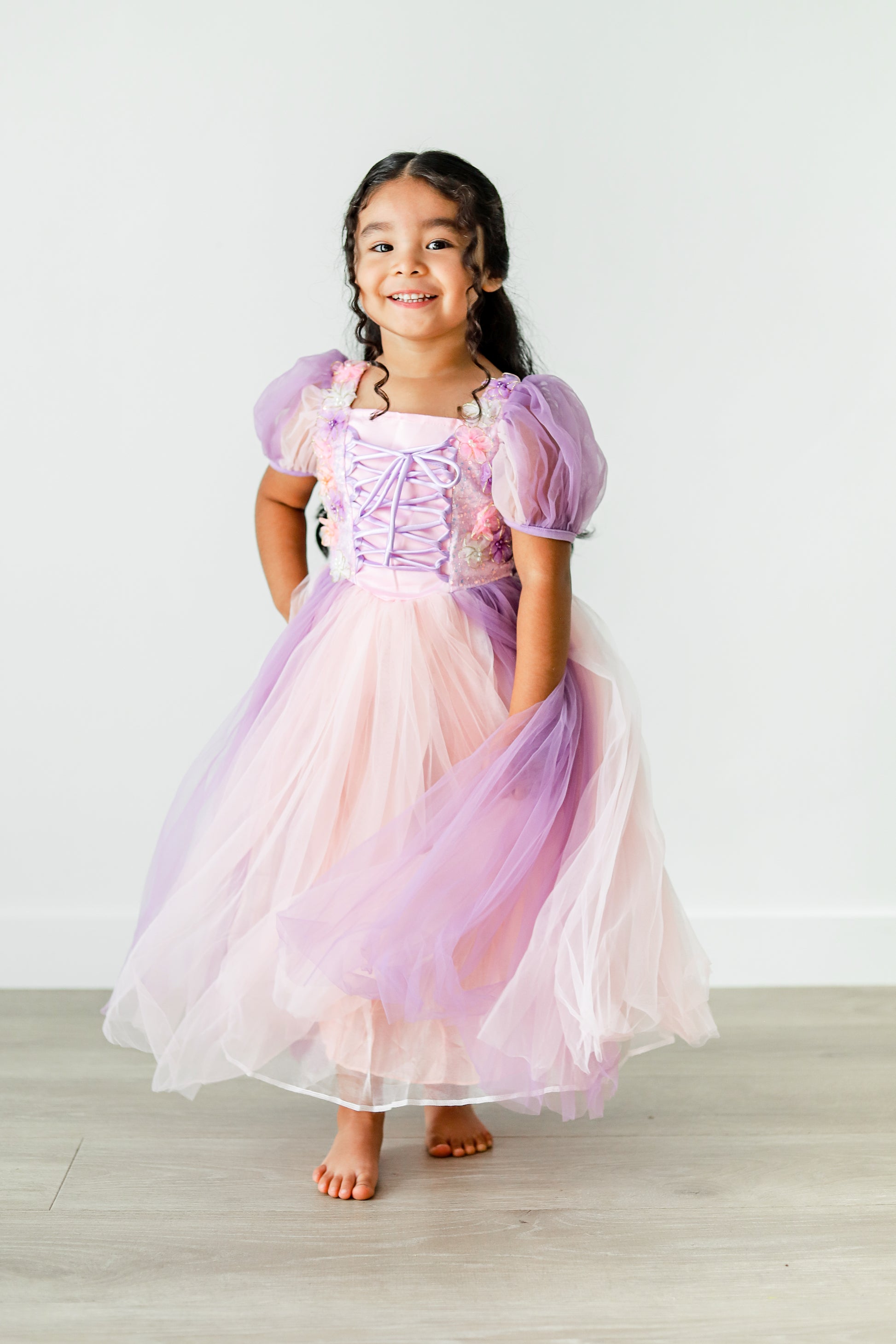 Beaded Flower Rapunzel Princess Dress - Lavender & Pink Edition